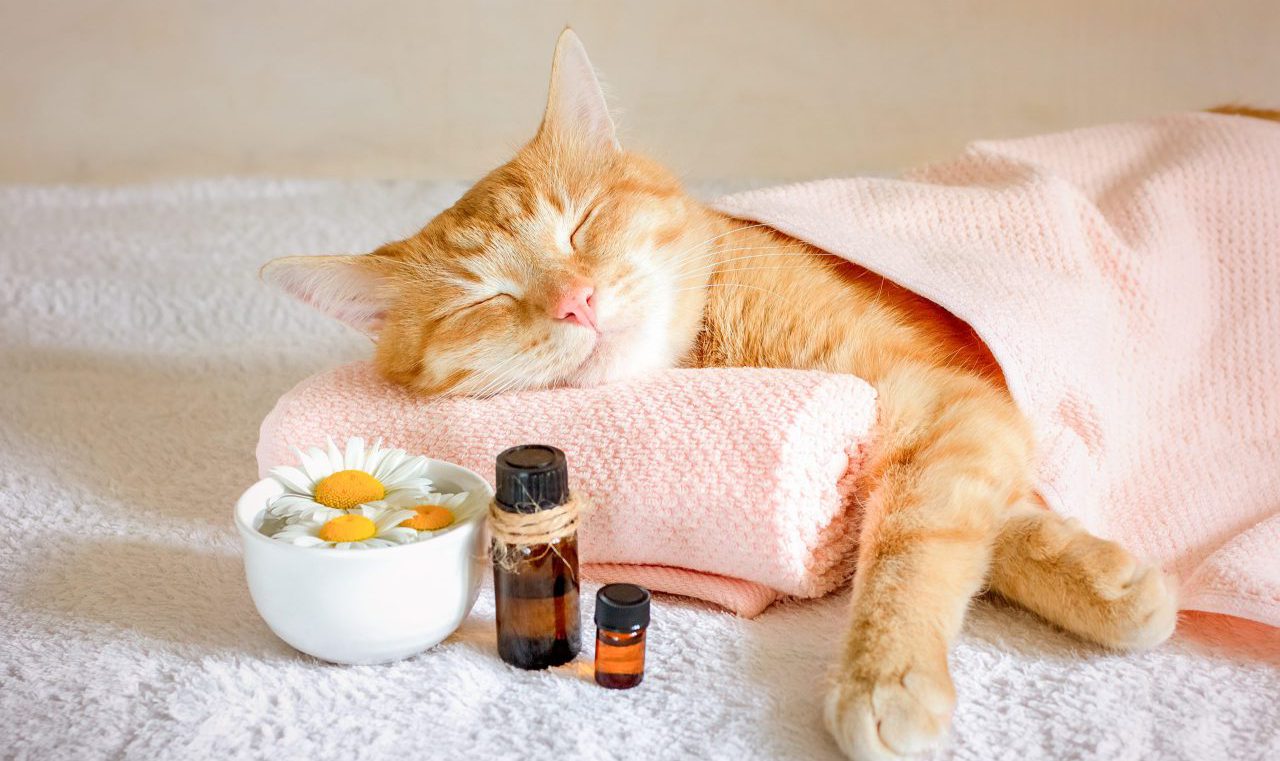 Sleeping,Cat,On,A,Massage,Towel.,Also,In,The,Foreground