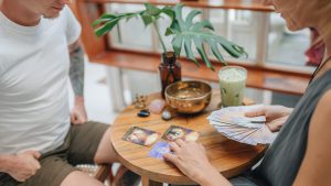 Woman,Is,Reading,Tarot,Cards,In,Cafe
